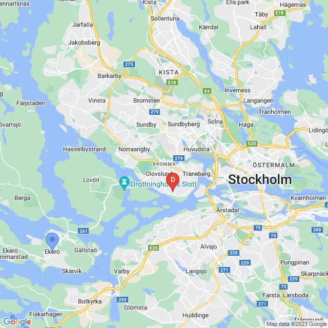 Blåmarkör på kartan visa Ekerö kyrkväg